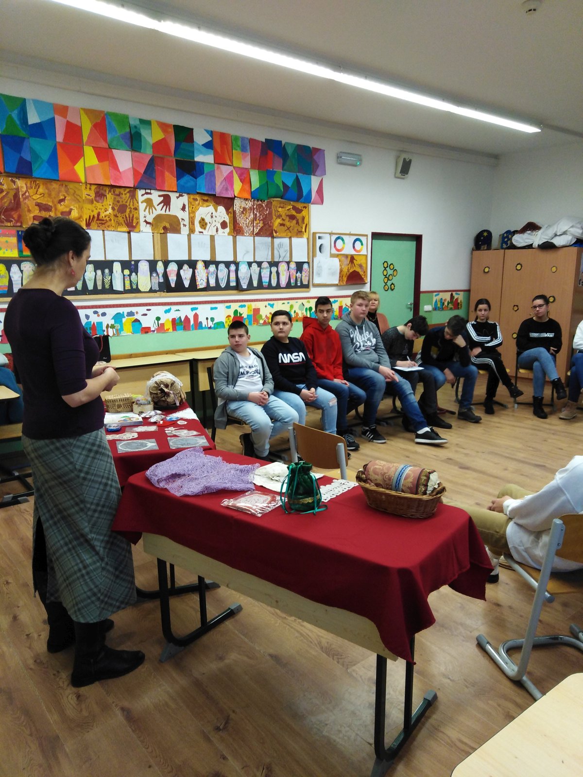 Ha azt hiszed, hogy a csipkéhez elég vagy te, egy horgolótű meg egy vékony cérna, akkor erősen tévedsz! A csipke ennél lényegesebben több, művészet, hagyomány, kecses becs, remekmű! Tudták meg a fiatalok, amikor gondolatban elkalandoztak a csipkekészítés őskorába. Persze közben megismerkedtek a rafinált tűkkel – nohát, hogy mennyi féle - fajta van, a fonalak eredetével s egy kis földrajz, történelem, gazdaság ismeret is előkerült, amikor közösen kitalálták hol is volt Németalföld, Itália, mikor is volt a reneszánsz kora. S persze a kisebbek szinte már nem is ismerték a növényi eredetű rostokat, most könnyen megtanulták – kendervászon, lenvászon, ezt a hegyet megmászom. Hogy mi fán terem a gyapot s mit is eszik a selyemlepke hernyója s milyen”kabátot ölt” magára, azt már közösen találták ki. S hogy miből készült s mekkora selyemszálat gombolyítanak le a gubóról, azt már csak tippelni lehetett: 2-6 méter talán. Bizony ennél kicsivel hosszabb átlagosan 2000 méter selyemszálat nyernek a gubóról. S külön tudomány, hogy a csipkét fonják, varrják, szövik, kötik, hurkolják, horgolják vagy egyenesen „verik” – mindezekre láttak példákat a gyerekek.